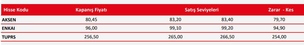Listede yer alan hisseler