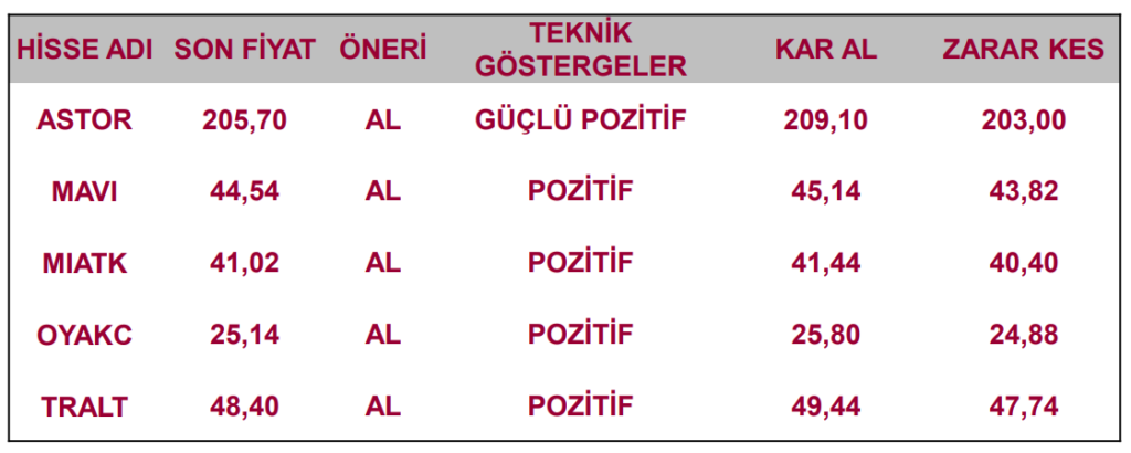 İlgili öneri listesinde toplam 5 hisse yer aldı:
