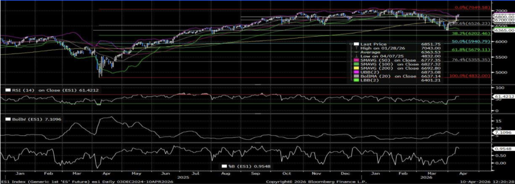 ABD vadeli endeksleri, ABD–İran arasındaki kırılgan ateşkese yönelik belirsizlikler nedeniyle haftanın son gününde hafif geri çekilirken piyasa temkinli bir iyimserlik içinde kalmayı sürdürüyor. Buna rağmen dün gerçekleşen işlemlerde Dow Jones Industrial Average %0,58, S&P 500 %0,62 ve Nasdaq Composite %0,83 yükselerek ateşkes beklentisiyle haftalık ralliyi genişletti.