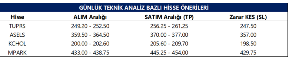 TUPRS, ASELS, KCHOL ve MPARK Bugünün Önerileri Oldu