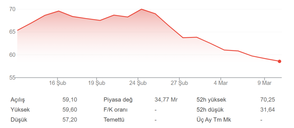 Şok Marketler Ticaret A.Ş. – SOKM 1 aylık hisse değişim grafiği