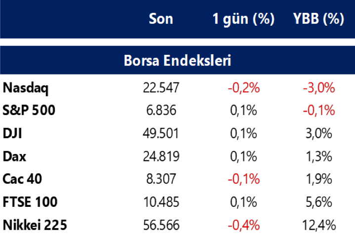 Küresel piyasalarda temkinli görünüm korunurken, jeopolitik ve teknoloji kaynaklı başlıklar fiyatlamalar üzerinde belirleyici olmaya devam ediyor.