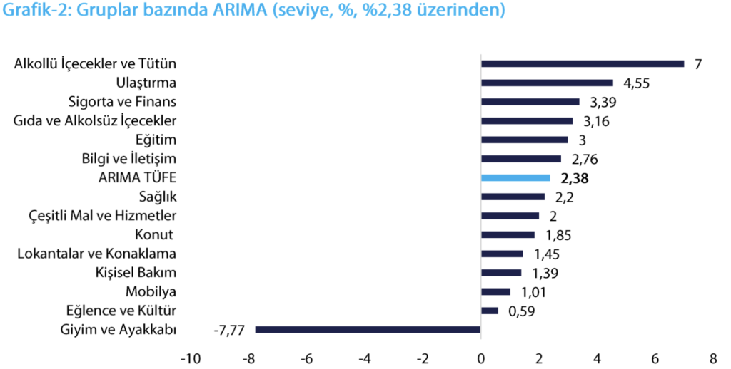 • TÜFE’nin, Mart ayında %2,38 geleceğini hesaplıyor. %2,38 gelmesi durumunda yıllık enflasyonun %31,53’den %31,45’e gerileyeceğini değerlendiriyor.