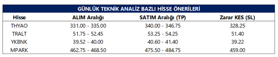 Teknik analiz listesinde şu hisseler bulunuyor: