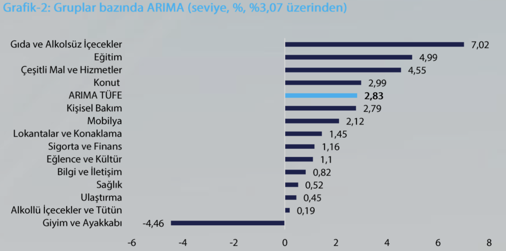 •”Planlanan yeni toplu taşıma zamları (16 baz puan) ve gıda (8 baz puan) tarafındaki yukarı yönlü seyir enflasyonda ilave 24 baz puanlık artışa sebep olmuştur.”