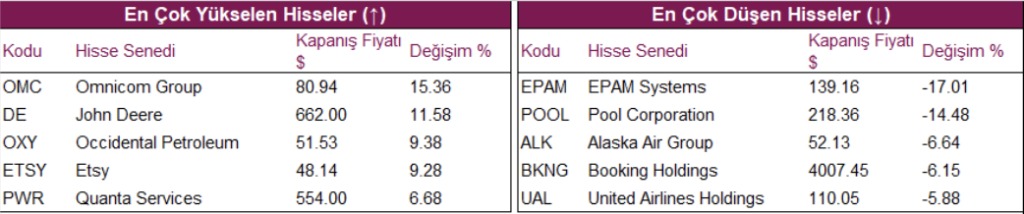 Yön arayışının devam ettiği ABD Endekslerinde, seans içindeki iki yöne de sert hareketler gerçekleşti ve günün sonunda endeksler negatif performanslarla günü tamamladı. S&P 500 %0,28, Dow Jones %0,54, Nasdaq %0,31 değer kaybetti. İşlem hacimlerindeki düşüş devam etti. Hazine tahvilleri hafif alıcılı seyir izledi.