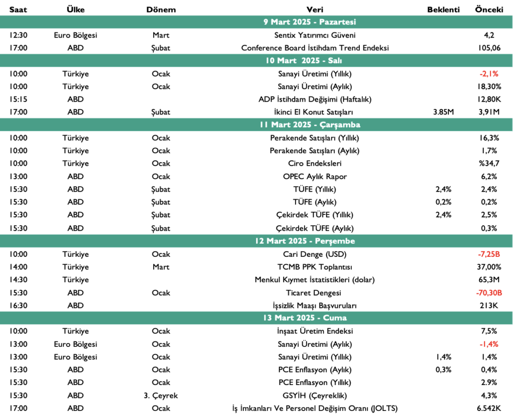 Gelecek Haftanın Ekonomik Takvimi