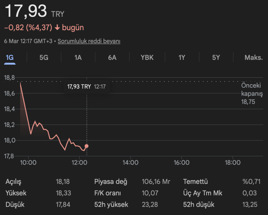 Ayrıca şirket,  5 Mart 2026 tarihli Yönetim Kurulu kararıyla, 2025 yılı kârından 2 taksit halinde kâr payı dağıtma kararı aldı. Hisse başına net 0,2885 TL nakit kâr dağıtılması planlanıyor. Kar payı ödemelerinin ilk taksitinin 13 Mayıs 2026, ikinci taksitinin ise 5 Ekim 2026’da yapılması öngörülüyor. Kar dağıtım önerisi Genel Kurul’un onayına sunulacak. Son kapanış fiyatına göre temettü verimliliği %1,5 düzeyindedir.