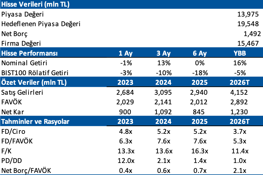 Şirket, 2025 yılında 1,6 milyar TL yatırım harcaması, 900.000-980.000 MWh üretim ve %70-75 aralığında FAVÖK marjı öngörmüştü. Yılı, 1,6 milyar TL yatırım harcaması ile beklentiler paralelinde tamamlarken, 880.937 MWh elektrik üretimi ve %68 FAVÖK marjı gerçekleştirdi.