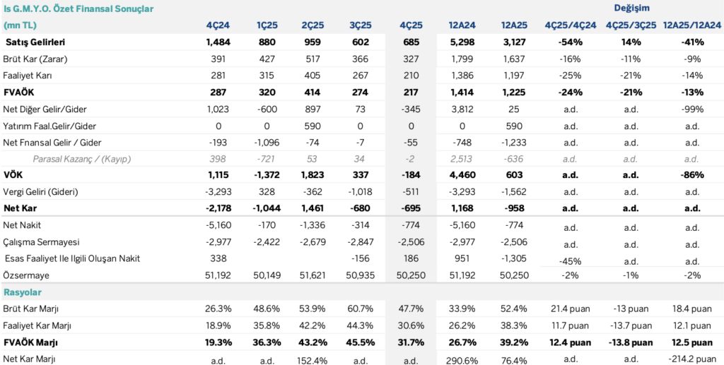 ISGYO (EP) 4Ç25 Finansal Sonuçlar – Olumsuz