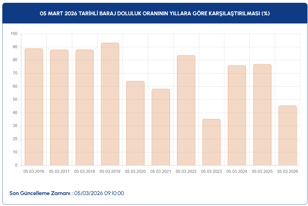 Son 10 yıl içerisindeki 5 Mart baraj doluluk oranları şu şekilde: