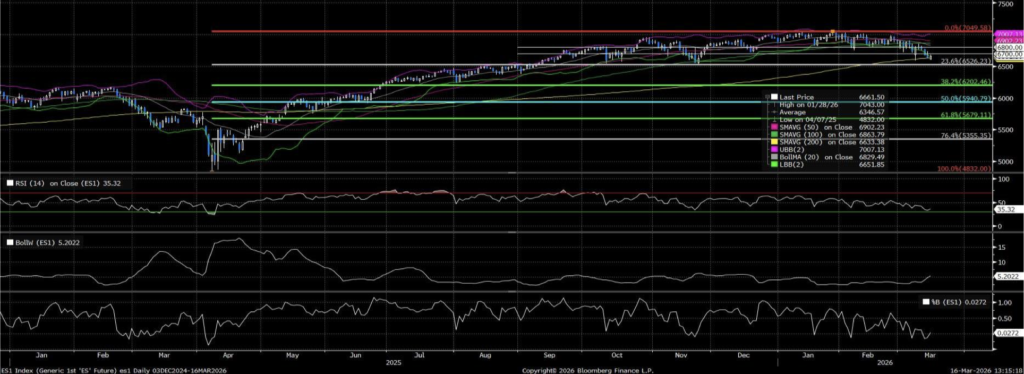 Geçen hafta Dow Jones, S&P 500 ve Nasdaq endeksleri üst üste üçüncü haftayı düşüşle tamamlarken artan enerji fiyatları ve enflasyon baskısı ABD Merkez Bankası’nın faiz indirimi beklentilerini zayıflatarak piyasa üzerindeki baskıyı artırdı. Teknik olarak S&P 500 endeksinde yükseliş trendi sonrası fiyat 7.000 puan civarındaki güçlü direnç bölgesinden geri çekilerek kısa vadeli bir düzeltme sürecine girmiş ve şu anda yaklaşık 6.660 seviyesinde işlem görüyor.
