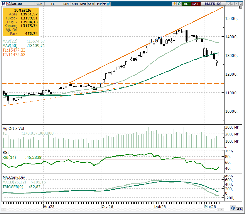 Özellikle son dönemde etkili olan satış baskısının ardından gelen bu yükseliş, endeksin teknik görünümünde kısa vadeli bir rahatlamaya işaret ederken, piyasalarda risk iştahının yeniden canlanmaya başladığını göstermektedir. Teknik açıdan değerlendirildiğinde, endeksin yukarı yönlü hareketini sürdürebilmesi için 13.300–13.400 bandı önemli bir direnç bölgesi olarak öne çıkmaktadır.