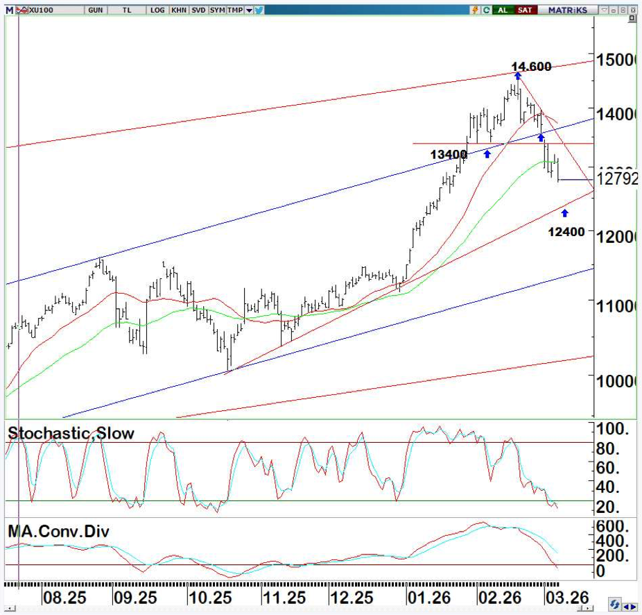 Haftanın ilk işlem gününe satıcılı başlaması beklenilen endekste, 100 günlük ortalamanın geçtiği nokta olan ve aynı zamanda uzun vadeli yükselen trend desteği konumunda bulunan 12,370 seviyesi haftalık bazda önemli destek bölgesi olarak takip edilecek. Açılış sonrasında bu desteğe yaklaşılması durumunda kısa vadeli tutunma çabası görülebilir.