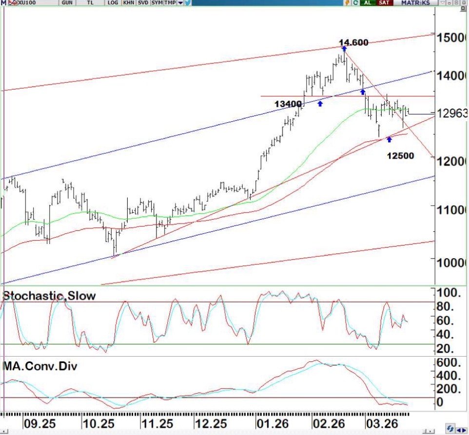 50 günlük ortalamanın geçtiği bölge olan 13.070 seviyesinin üzerinde bir kapanış görmedikçe kalıcı hareketler beklenmiyor. Bu seviyenin geçilmesi durumunda ise ilk etapta, kısa vadede daha önemli bir direnç noktası olarak görülen 13.400 seviyesine kadar atağın devamı beklenebilir.