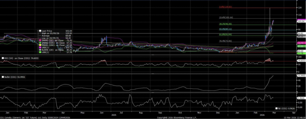 Brent petrol fiyatları bu hafta yaklaşık %8 yükseldikten sonra 101 $ civarında yatay seyrederek yükselişine kısa bir ara verdi. Piyasalar İran ile devam eden çatışmaları ve Hürmüz Boğazı’nın kapalı kalmasının enerji arzı üzerindeki etkilerini yakından izlerken, ABD enerji fiyatlarını düşürmek için denizde bekleyen Rus petrolünün satışına geçici izin verdi ve tankerleri korumak için uluslararası bir eskort koalisyonu çağrısı yaptı. Buna rağmen Orta Doğu’daki hava saldırıları üretimi aksatmaya devam ederken, IEA’nın açıkladığı 400 milyon varillik stratejik rezerv salımı petrol fiyatlarını düşürmekte şimdilik sınırlı etki yarattı.