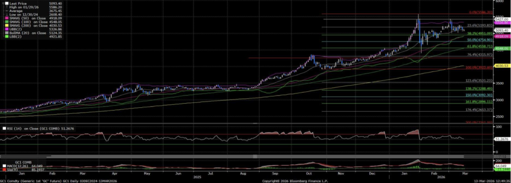 Altın fiyatları ons başına 5.080 $’ın üzerine çıksa da yükselen petrol fiyatlarının enflasyon endişelerini artırması nedeniyle haftayı üst üste ikinci kez düşüşe kapatmaya hazırlanıyor. ABD Başkanı Donald Trump ve İran lideri Mojtaba Hamaney’in sert açıklamaları ve Hürmüz Boğazı’nın kapalı kalma riski enerji fiyatlarını yükselterek Fedlin haz indirim beklentilerini zayıflattı; piyasalar gelecek hafta faiz indirimi ihtimalini sıfır, yıl sonuna kadar ise yaklaşık %70 olarak fiyatlıyor.
