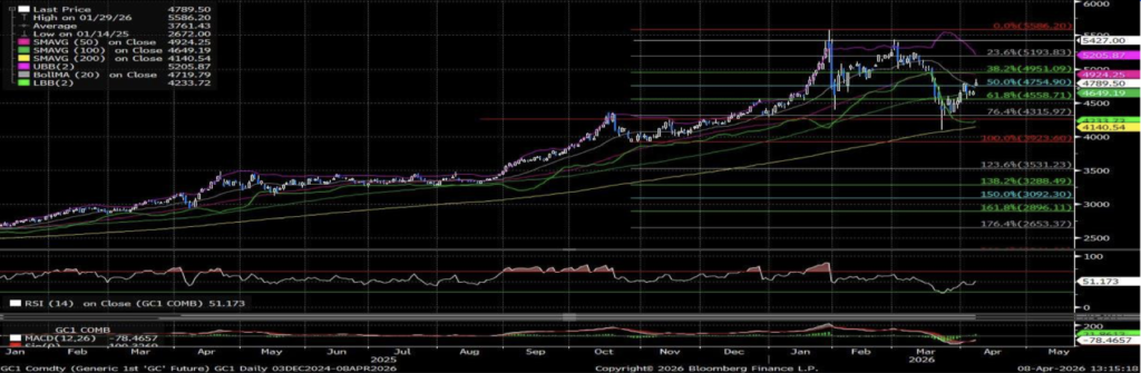 Teknik olarak ons altın 4550–4600 bölgesinden aldığı destekle toparlanarak 4900 seviyesine doğru tepki vermiş ve kısa vadede yeniden yukarı yönlü deneme sinyali üretiyor. RSI’ın 50 seviyesine yakın olması ve MACD’de toparlanma, momentumun nötrden pozitife dönme çabasında olduğunu gösteriyor. Ancak 5000–5100 bandı güçlü direnç olarak öne çıkarken, bu bölge aşılmadıkça yükselişler sınırlı kalabilir ve yeniden satış baskısı görülebilir. Teknik seviyeler olarak;