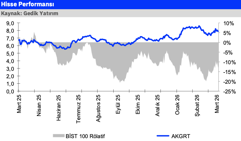 Gedik Yatırım Genel Değerlendirme: “Yüksek reel faiz ortamının devamını sigorta şirketleri açısından önemli bir katalist olarak değerlendiriyoruz. Aksigorta, son 1 yılda endekse göre %12 negatif ayrışırken, son 1 ayda %4 pozitif relatif performans sergilemiştir. Şirket, son 12 aylık finansallarına göre 5,1x F/K ve 1,7x PD/DD çarpanlarıyla işlem görmekte olup, sektör ortalamalarına göre yaklaşık %10-15 iskontolu seviyeleriyle cazip değerleme sunmaktadır. Kısa vadede beklenenden yüksek faiz ortamının destekleyici etkisi sürerken, orta-uzun vadede devam eden yeniden yapılanma sürecinin kârlılığa daha belirgin yansımasını bekliyoruz.”