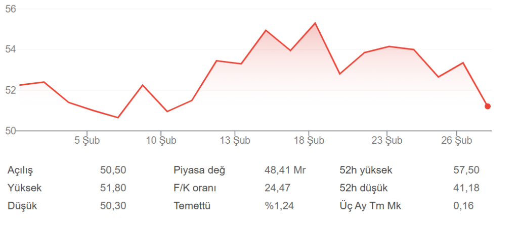Çimsa Çimento’nun net dönem kârı %12 azaldıÖzkaynaklar %1 azaldıÇimsa Çimento 1 aylık hisse grafiği