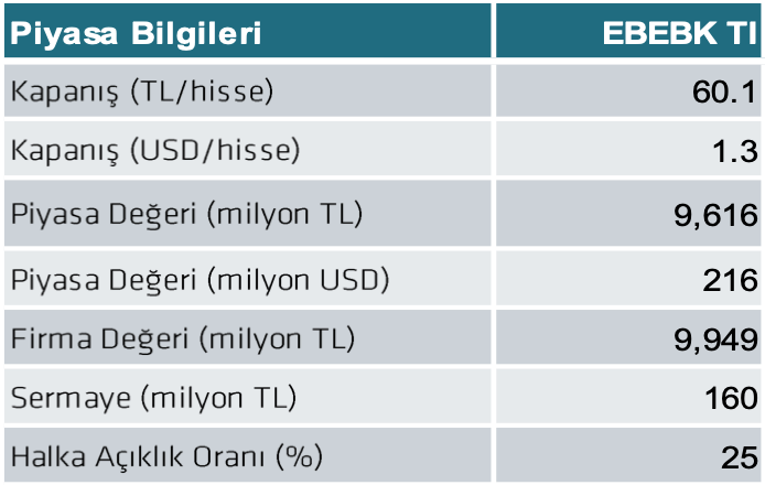 Ebebek için hedef fiyatını ise 81 TL ve tavsiyesini AL yönünde sürdürüyor. Şirket hisseleri 2026T göre x F/K ve x FD/FAVÖK çarpanlarıyla işlem görmektedir.