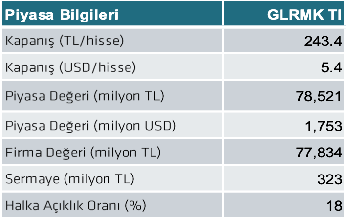 Kuveyt Türk Yatırım, %14,5’lik iskontolu satış sonrası şirkette gün içinde kar satışları olabileceğini düşünüyor. Gülermak için hedef fiyatını 252 TL ve tavsiyesini AL olarak sürdürüyor. Şirket, 2026T göre 13.07x F/K ve 9.84x FD/FAVÖK çarpanlarıyla işlem görmektedir.