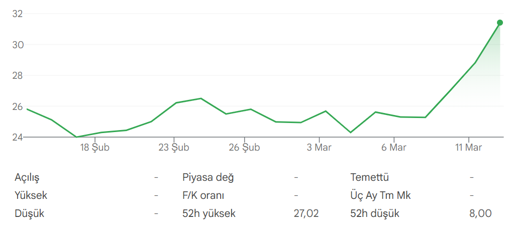 AYES 1 aylık hisse değişim grafiği
