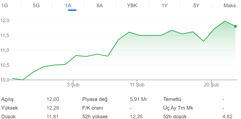 Şirketin Özkaynakları 4. Çeyrekte %6 Artarak 1,9 Milyar TL’yi AştıEGEPO 1 aylık değişim grafiği