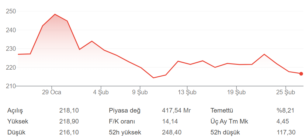 TUPRS 1 aylık hisse grafiği